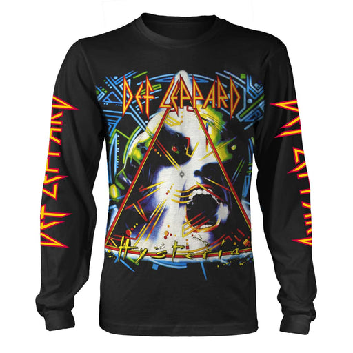 100% Official MerchandiseBlack Cotton Long Sleeved Crew Neck T-ShirtDEF LEEPARD Hysteria LOGO