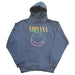 An official licensed Nirvana Unisex Pullover Hoodie featuring the 'Sorbet Ray Happy Face' design motif. This high quality Pullover Hoodie is available in a turquoise blue colourway.